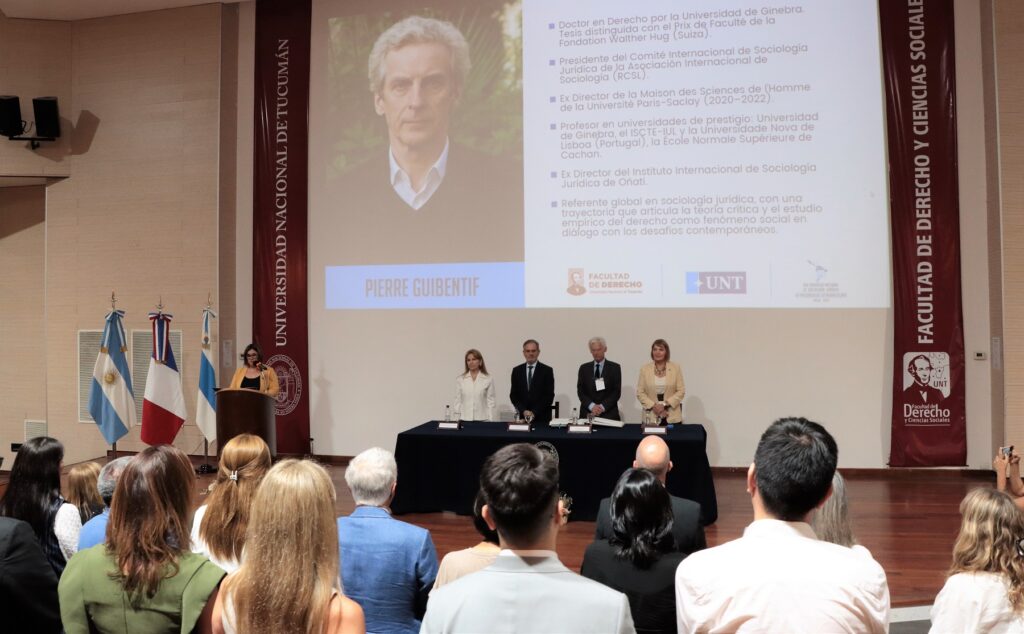 En un emotivo acto celebrado en la Facultad de Derecho y Ciencias Sociales, la Universidad Nacional de Tucumán otorgó el título de Doctor Honoris Causa al destacado académico Pierre Guibentif, presidente de la Asociación Internacional de Sociología Jurídica con sede en Lisboa. La distinción, aprobada por unanimidad del Consejo Superior, fue una propuesta impulsada por la propia Facultad de Derecho en reconocimiento a su trayectoria y a su influencia en el desarrollo de la Sociología Jurídica a nivel global.