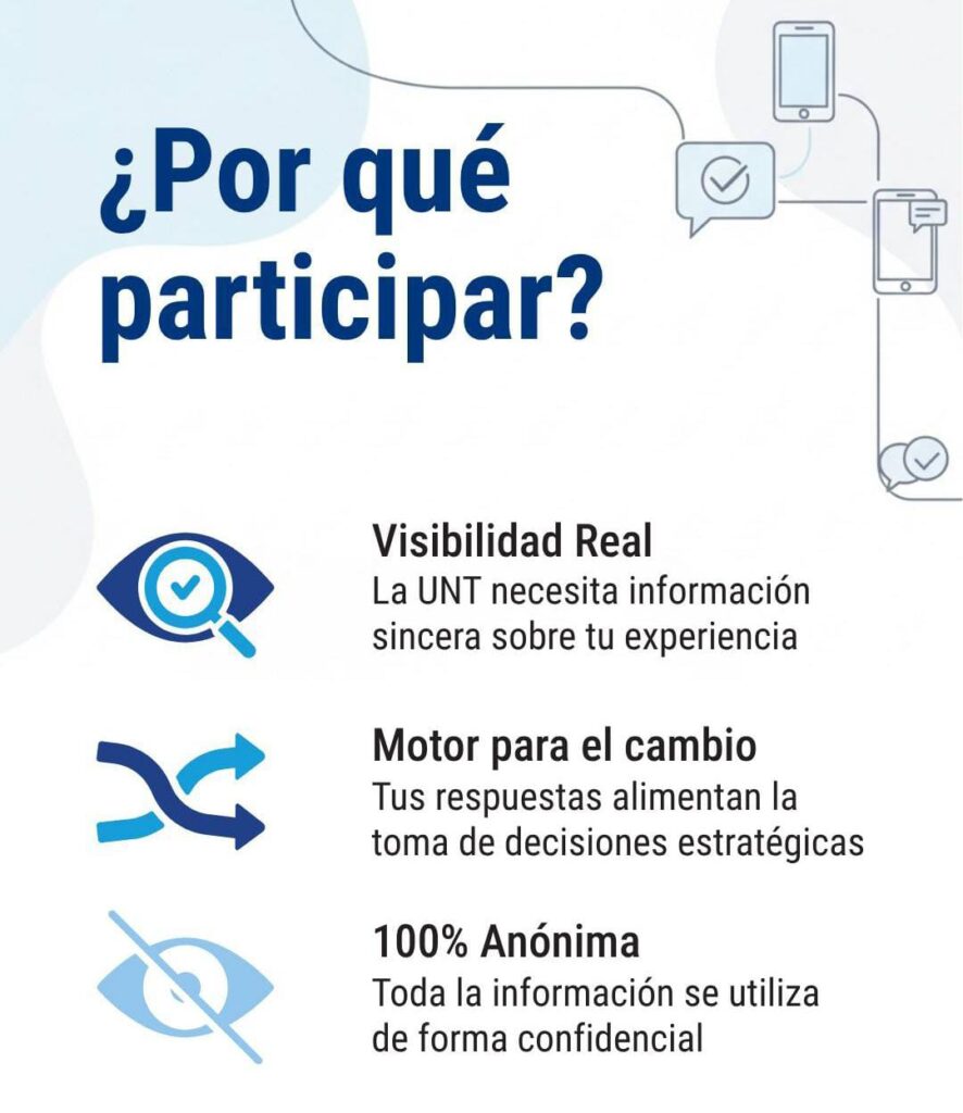 El relevamiento es 100% anónimo, se completa en menos de 15 minutos y está dirigido a todas y todos los estudiantes de grado de la UNT.