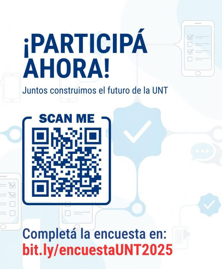 La encuesta puede completarse ingresando a bit.ly/encuestaUNT2025 o escaneando el código QR disponible en las piezas gráficas oficiales distribuidas en las distintas unidades académicas.