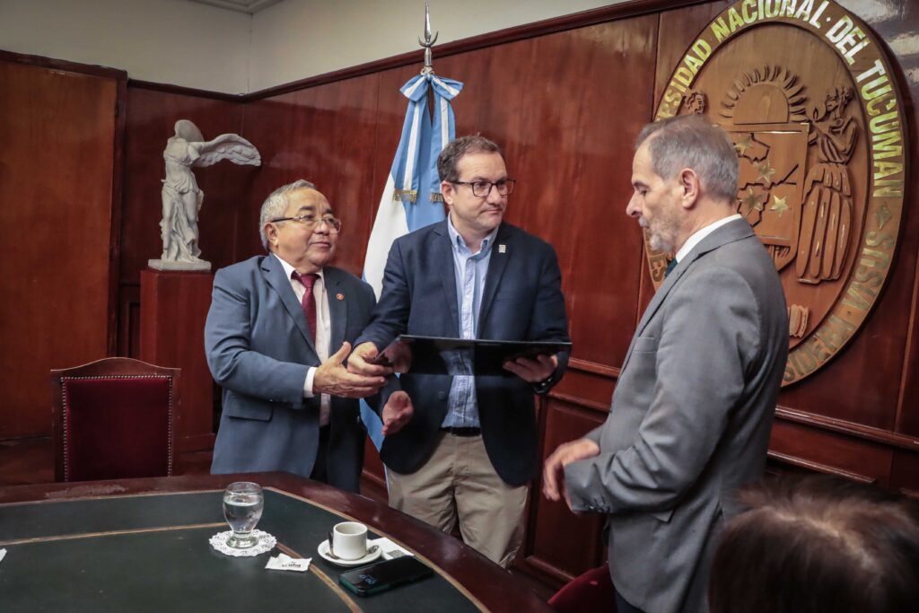 En este contexto, el rector de la UNT, Ing. Sergio Pagani, recibió esta mañana la visita del Prof. Dr. Clarito Rojas, presidente de la AUGM y rector de la Universidad Nacional de Concepción (Paraguay). Durante el encuentro, se formalizó un convenio interinstitucional entre ambas universidades, orientado a fortalecer la cooperación científica, académica y la movilidad estudiantil.