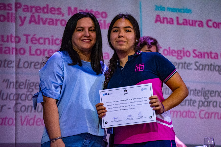 El martes pasado, en el Espacio Cultural de la Facultad de Filosofía y Letras, se llevó a cabo la entrega de premios de la Olimpíada Estudiantil de Comunicación y Periodismo, organizada por el Departamento de Ciencias de la Comunicación y que tuvo como objetivo promover la producción de contenidos y la reflexión sobre el rol social de la comunicación en jóvenes de nivel secundario.