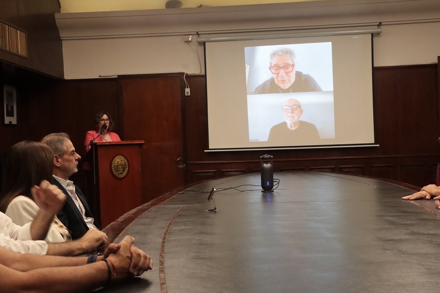 Estuvieron presentes el rector, Ing. Sergio Pagani; la vicerrectora, Dra. Mercedes Leal; el secretario de Extensión Universitaria, Lic. Marcelo Mirkin; el director de la Orquesta Juvenil, M° Gustavo Guersman y, vía Zoom, los artistas quienes, luego de hacer el anuncio, brindaron una conferencia de prensa.