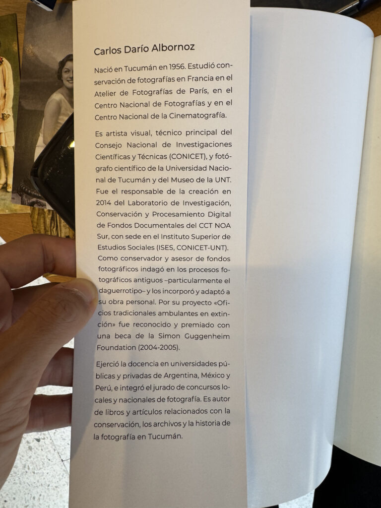 En la entrevista que acompaña el proceso de creación del libro, Albornoz repasa la transformación del oficio fotográfico en Tucumán desde mediados del siglo XIX. Menciona el rol pionero de Amadeo Jacques, director del Colegio Nacional y de su colega daguerrotipista, quienes ofrecían al público local los primeros retratos realizados con esa técnica única e irreproducible.