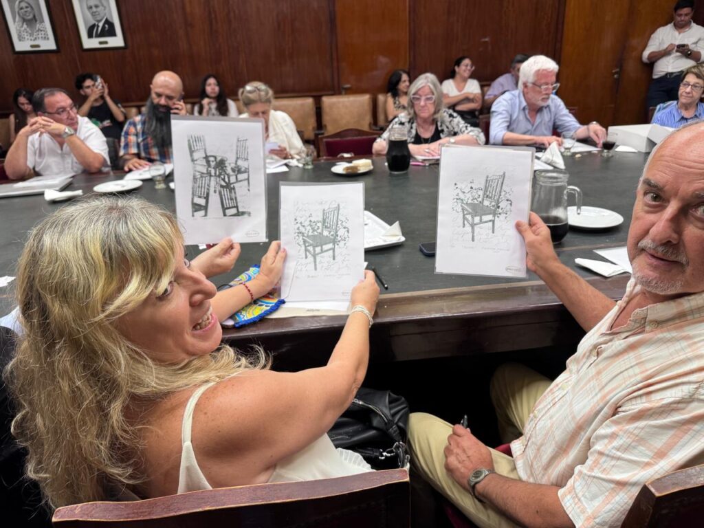En un gesto institucional de cierre de ciclo, la decana de la Facultad de Artes, Dra. Silvia Agüero, obsequió presentes elaborados por la comunidad artística de su unidad académica a todos los consejeros.