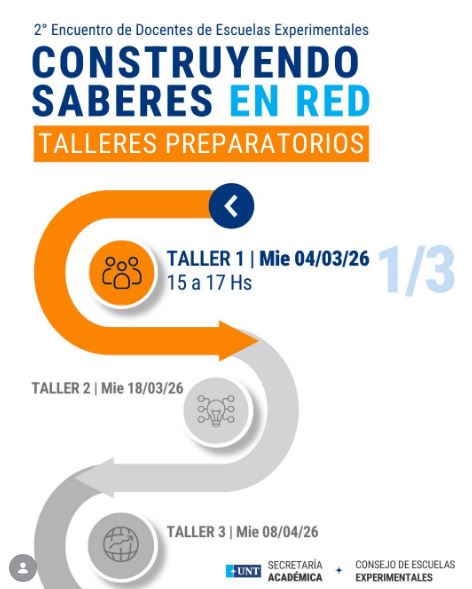 En el marco del 2° Encuentro de Docentes de Escuelas Experimentales “Construyendo saberes en red”, que se realizará los días 23 y 24 de abril, la Secretaría Académica y el Consejo de Escuelas Experimentales convocan a participar de los talleres preparatorios destinados a docentes de Nivel Medio.