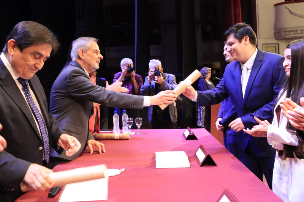 En este marco, el decano destacó la importancia del egreso como parte del compromiso de la universidad pública: “Un nuevo triunfo de la universidad pública, en este caso con los graduados de Medicina y de Kinesiología. En la fecha entregamos más de setenta títulos de médicos, kinesiólogos y fonoaudiólogos que se gradúan en nuestra facultad”, expresó Mateo Martínez.