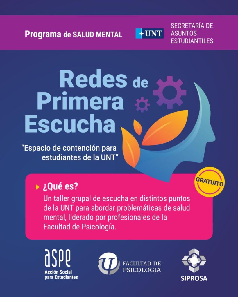 La Universidad Nacional de Tucumán (UNT), a través de la Secretaría de Asuntos Estudiantiles de la UNT, lanzó una nueva edición de las Redes de Primera Escucha, una propuesta gratuita orientada a brindar contención y acompañamiento a estudiantes universitarios.